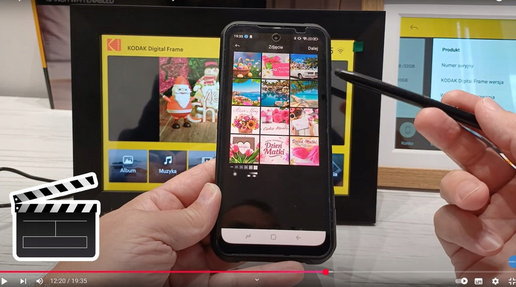- Multimedijos funkcionalumas – be nuotraukų, rėmelis taip pat palaiko vaizdo failus (MP4, MKV, MOV) ir muziką, leisdamas jums patalpinti visą multimedijos pristatymą su fonine muzika.