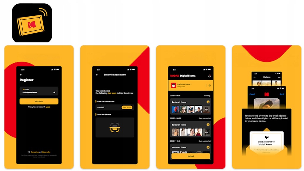 ✅ Naudodami programėlę „KODAK Digital Frame“, galite siųsti nuotraukas į visus prijungtus „KODAK Digital Frames“, kad ir kur būtumėte.