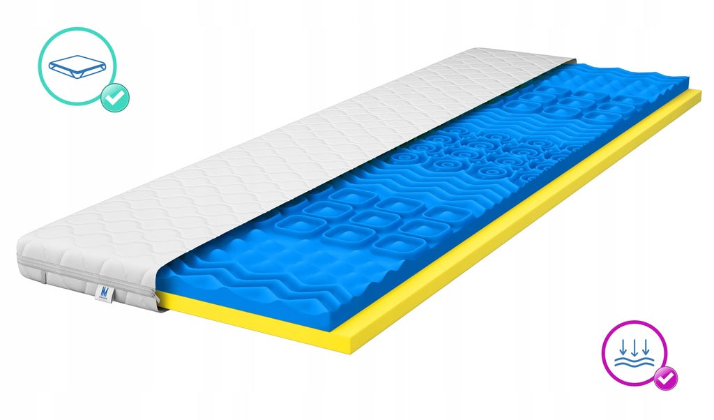 - Visko profiliuotas putplastis – masažinis sluoksnis – pagamintas iš visko profiliuoto masažinio putplasčio – 9 zonos (naudojamos zonos atitinka kūno slėgį – jos prisitaiko prie miegančiojo sudėjimo ir svorio) užtikrina labai aukštą naudotojo komfortą ir tinkamą gilų miegą