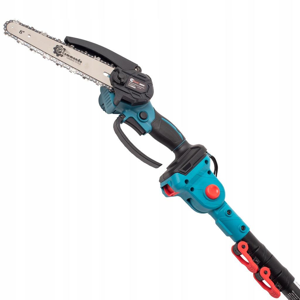 ✅Dėl praktiškos prailginimo rankenos akumuliatorinis pjūklas-genėtuvas COMMANDO® yra puikus įrankis aukštų medžių priežiūrai. Optimizuotas 30° ašmenų kampas leidžia patogiai genėti iki 4 metrų aukščio šakas, saugiai liekant ant žemės. Pridedamas pečių dirželis, todėl akumuliatorinį rinkinį lengva naudoti net ir ilgai naudojant.