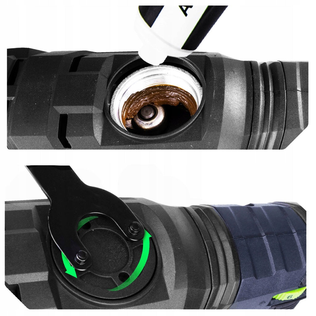 ✔️ Tiesiog nuimkite smūginio grąžto viršuje esantį dangtelį naudodami pridedamą raktą ir tada sutepkite techninius tepalus , kurie bus paskirstyti veikimo metu.